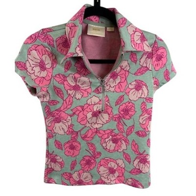 Maeve Anthropologie Sweater Top Women Size XS Floral Cropped Shirt Mint Pink Zip