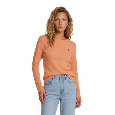Ralph Lauren Sport Top Long Sleeve Tee Women's Size Large Orange Ribbed Pony