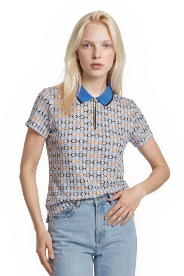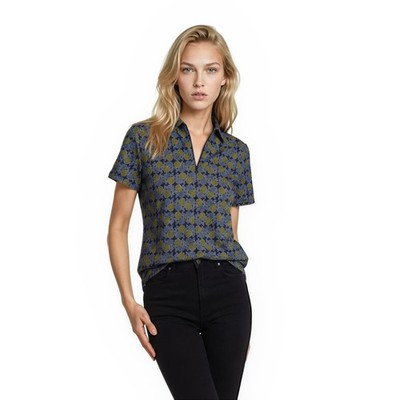 Tail Polo Shirt Women's Size Medium Blue Orange Geometric Quarter Zip Tennis Top