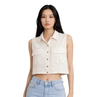 Pilcro Anthropologie 100% Linen Top Women's Size Medium White Crop Utility Vest