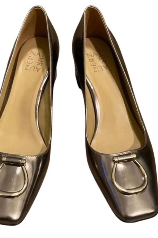 Naturalizer Pewter Patent Kalissa Chunky Heels Pumps Leather Women's Size 8 M