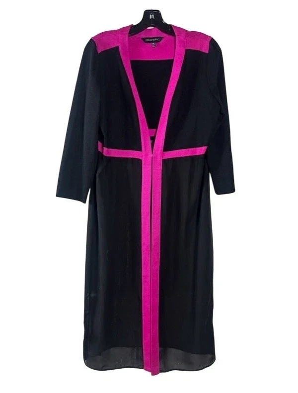 Ming Wang Knit Long Sweater Women's XS Black Pink Jacket Duster Cardigan Topper
