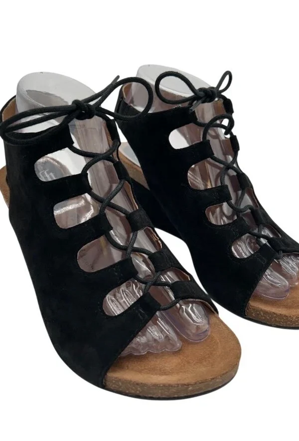 Söfft Women's Black Suede Lace Up Gladiator Wedge Sandals Shoes Size 8M