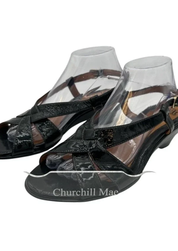 Features: Adjustable Strap, Comfort, Strappy, Wedge Heel, Patent Leather