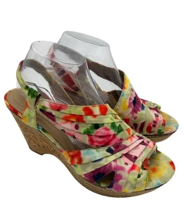 Naturalizer Floral Wedge Sandals Comfort Slingback Heels Lulianna Size 8.5M