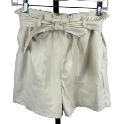 Sanctuary Cream Faux Leather Paperbag Waist Tie Front Shorts Women's Size Medium