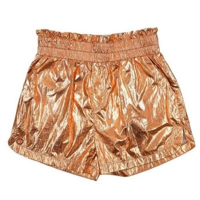 Simply Southern Metallic Gold Ruffle Smocked Waist Shorts Pockets Size Large