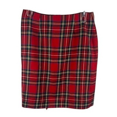 Rafaella Plaid Skirt 100% Worsted Wool Red Fringe Career Party Women's Size 10
