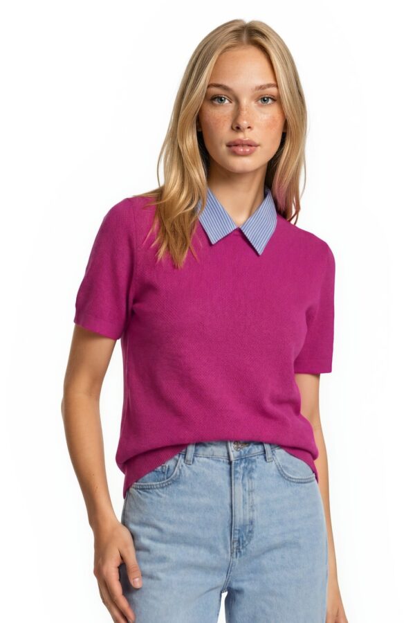 J.Crew Knit Top Women's Size Large Fuchsia Pink Striped Collar New Blouse Shirt