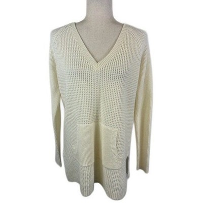 Lolë Cream V-Neck Waffle Knit Sweater Tunic Pocket Size Medium