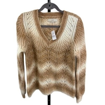 LOFT Sweater Women's Size Medium Tan Cream Openwork Cottagecore Cozy Soft Boho