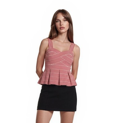HD in Paris Women's Size Medium Red White Striped Peplum Sweetheart Bandage Top