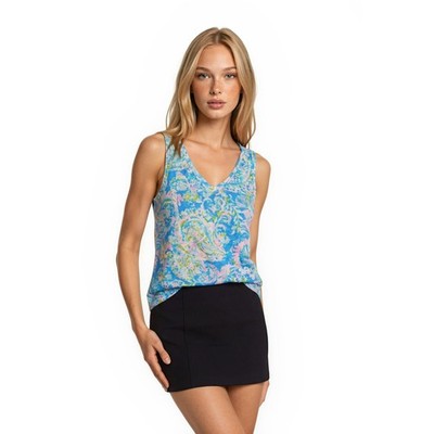 Lilly Pulitzer Top Women's Size Small Blue Pink Paisley Slub 100% Cotton Tank