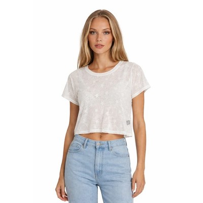 SHEIN Womens Size Medium White Star Mesh Sheer Crop Top Short Sleeve Crew Neck