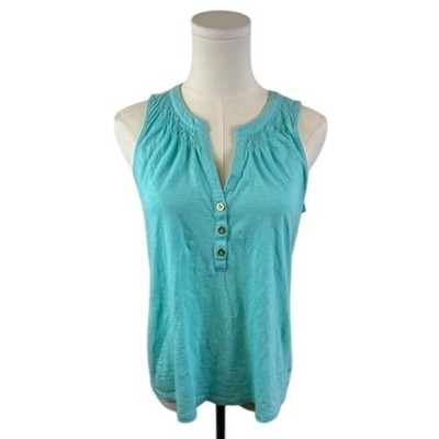 Lilly Pulitzer Sleeveless Top Button Up Aqua Blue Casual Tank Size S