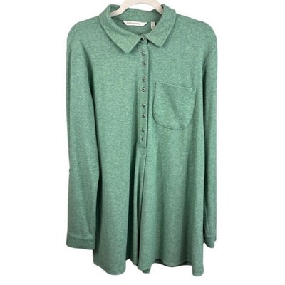 Soft Surroundings Green Collared Button Tunic Top Blouse Women's Size Large