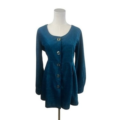 Soft Surroundings Velvet Tunic Top Button Front Long Sleeve Teal Size Medium