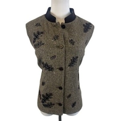 Vintage Talbots Wool Silk Nylon Velvet Tweed Vest Leaves Autumn Fall Size Large