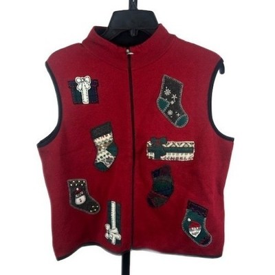 Vintage Woolrich Women's Sweater Vest Red Christmas Holiday Stockings Size Large