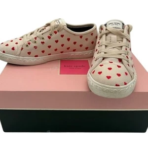 Kate Spade Canvas Sneakers Red Heart Print Lace Up Casual Tennis Shoes Size 6
