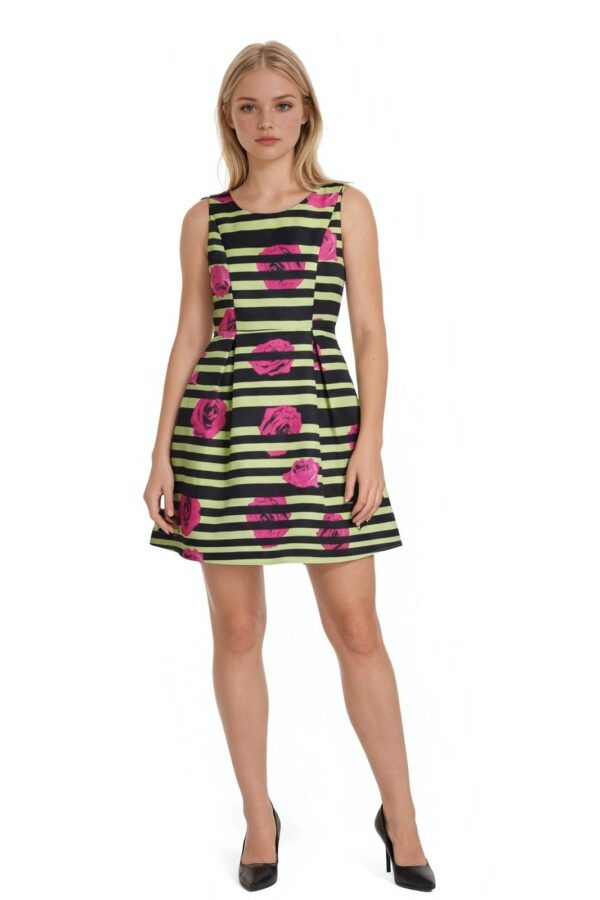Fashion Line Fit Flare Dress Women's Medium Green Black Striped Kentucky Derby