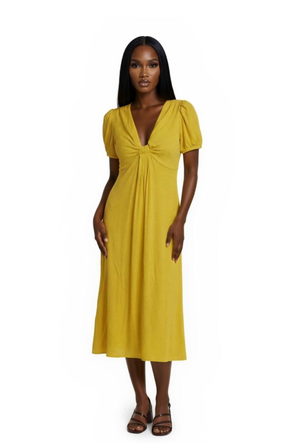 Line & Dot Women's Size Small Yellow Twist Bust Puff Sleeve Maxi Dress