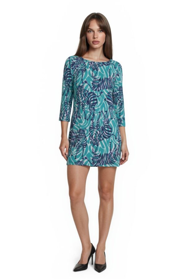 Lilly Pulitzer Shift Dress Women's Size Small Teal Zebra Print Pima Cotton