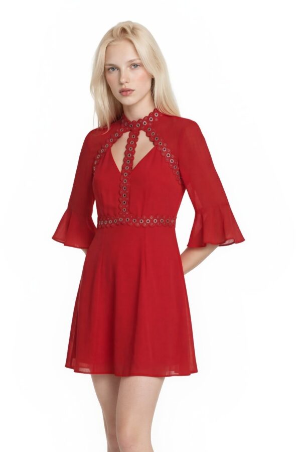 Marciano Mini Dress Women's Size 4 EU 40 Red Bell Sleeve Cutout Grommet Crochet