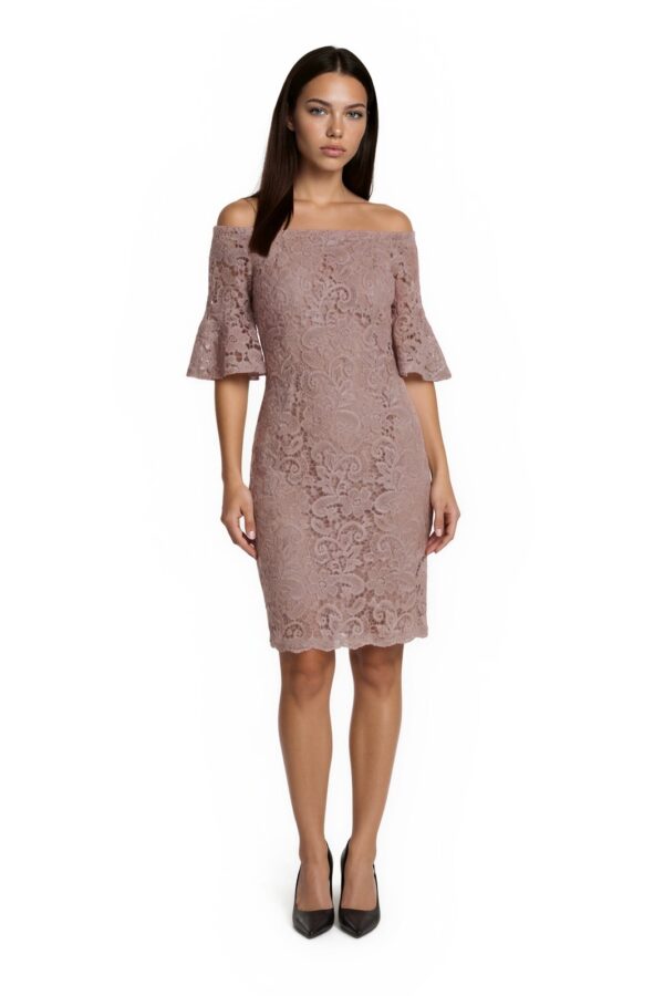 Marina Cocktail Dress Women's Size 14 Pink Lace Off Shoulder Metallic Crochet