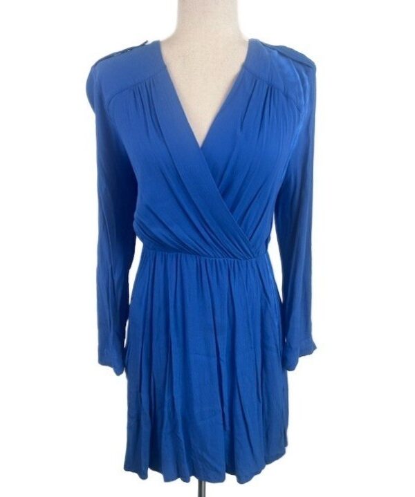 Maeve Anthropologie Blue Long Sleeve Mini Dress V Neck Casual Party Size Medium
