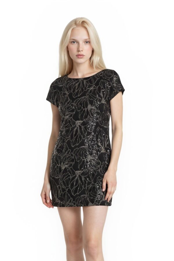 Tahari Arthur S Levine Shift Dress Women's Size 12 Petite 12P Black Silver