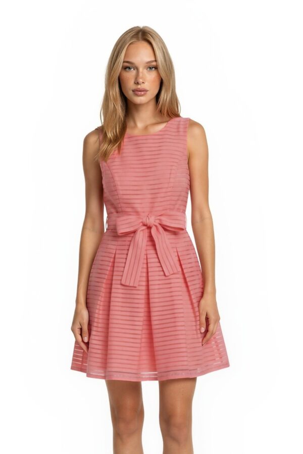 Tommy Hilfiger Fit Flare Dress Womens Size 6 Coral Pink Striped Belted