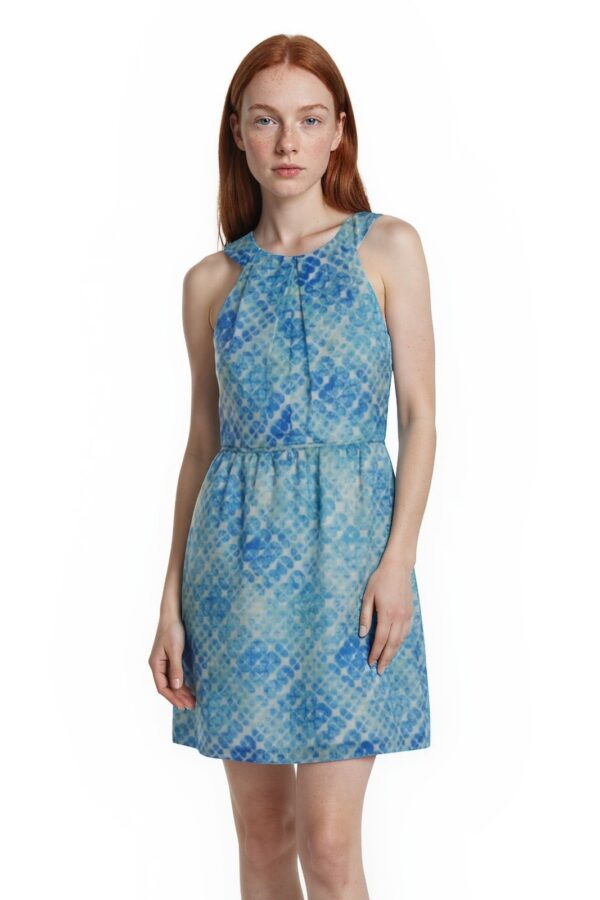 Shoshanna Sheath Dress Women's Size 10 Blue Green Tie Dye High Neck Sleeveless