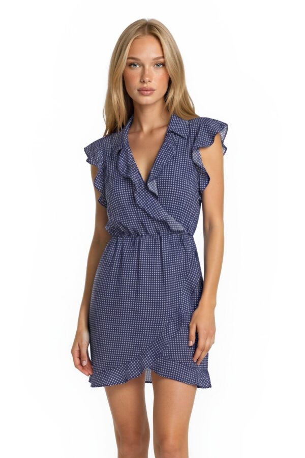 Sugar Lips Wrap Mini Dress Womens Size Medium Blue Gingham Ruffle V Neck