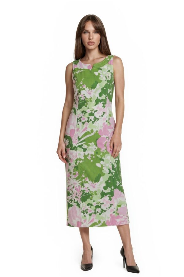 Talbots Sheath Dress Women's Size 2P Green Pink Floral Cotton Sleeveless