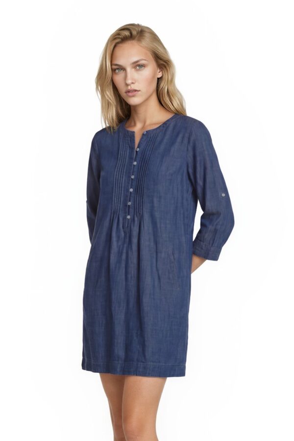 Talbots Shift Dress Womens Size 10 Blue Tencel Lyocell Pintuck Pleat