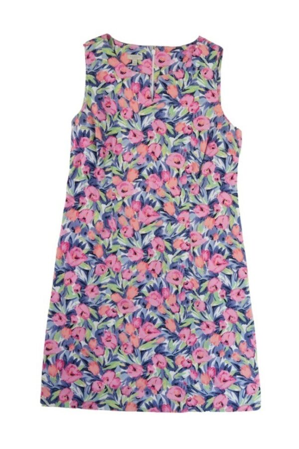 Talbots Sheath Dress Women's Size 12P Pink Blue Floral Sleeveless Pique