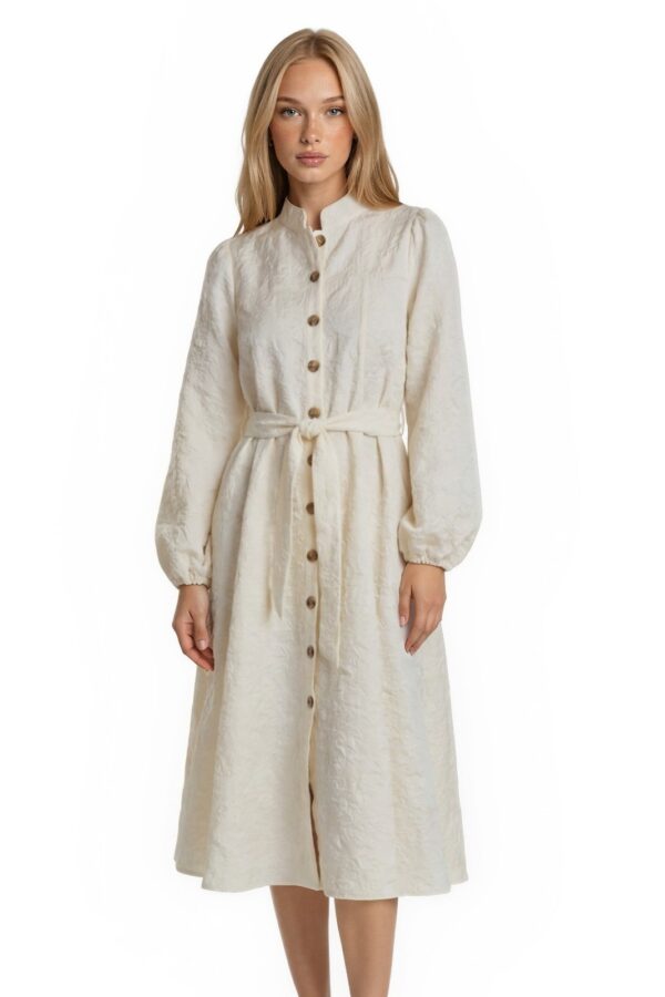 Sunday Up Jacquard Dress Womens Size Medium Cream Belted Midi Vintage 70s