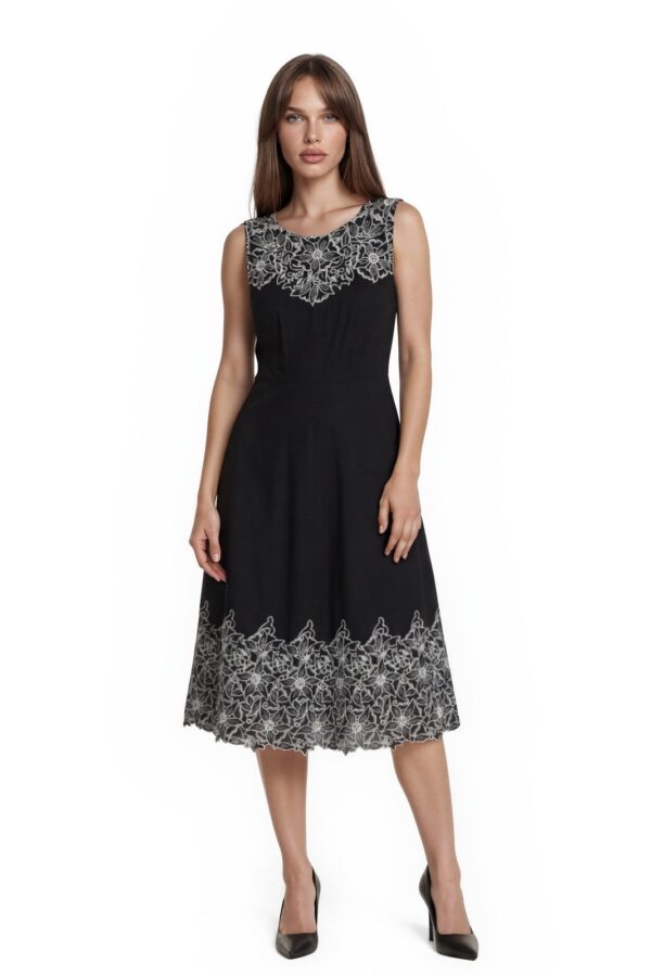 Talbots Fit Flare Dress Women's Size 6P Petite Black White Floral Embroidered