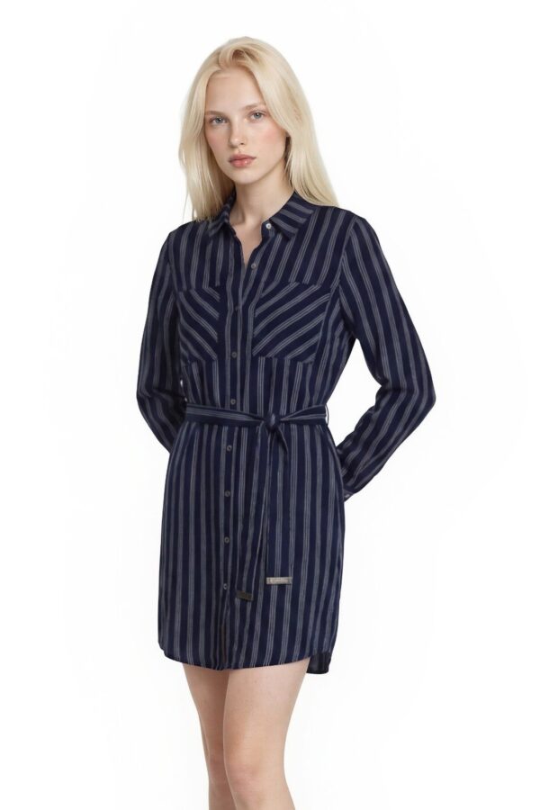 NWT Michael Michael Kors Shirt Dress Women's Size 6 Navy Blue Belted Striped