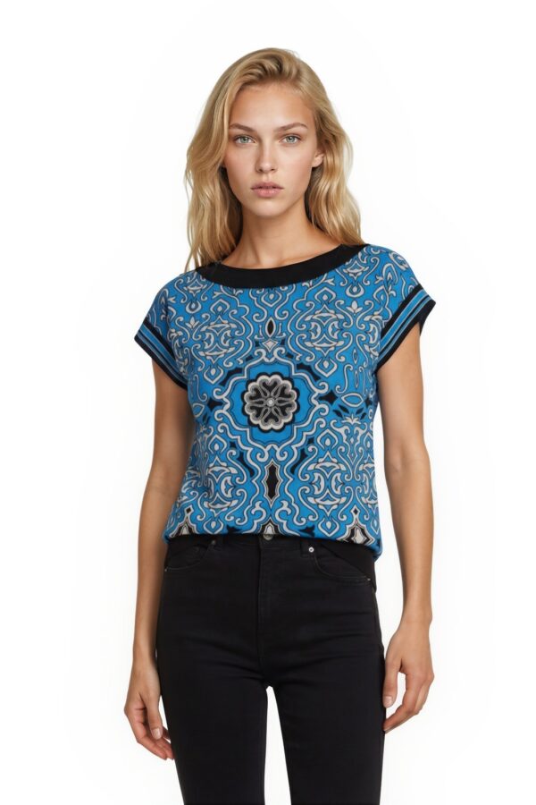 NWT Laundry by Design Knit Dress Women's Size Medium Blue Medallion Print
