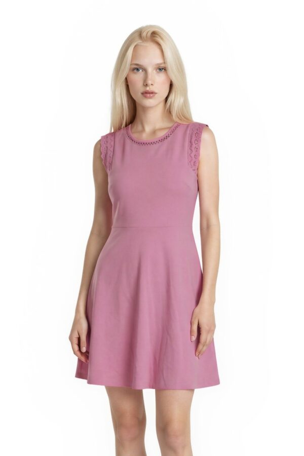 NWT Talbots Dress Womens Size Medium Petite PM Pink Fit Flare Crochet Cotton