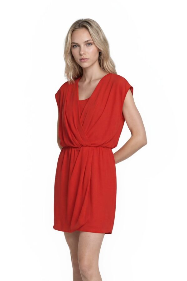 NWT DKNYC Faux Wrap Dress Women's Size 2X Red Draped Elastic Waist Sleeveless