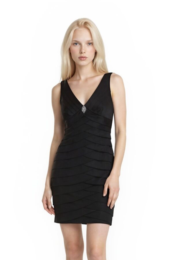NWT Jones Wear Cocktail Dress Women's Size 4 Black Tiered Rhinestone V-Neck