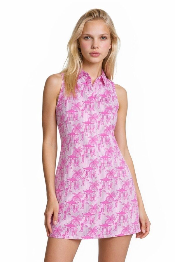 NWT Jude Connally Women's Large Pink White Peony Pagoda Pinstripe Harlee Dress