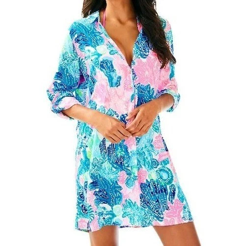 Lilly Pulitzer Women's Size Medium Coral Reef Print Button Down Tunic Dress