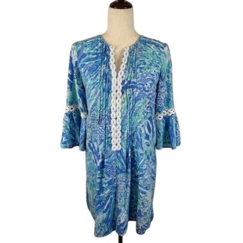 Lilly Pulitzer Womens Dress Blue Green Tunic Bell Sleeve Size Small