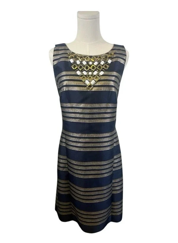 Lilly Pulitzer Sheath Dress Striped Sleeveless Beaded Neckline Size 8