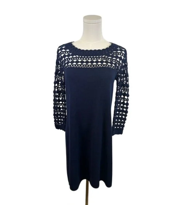 Lilly Pulitzer Merino Wool Crochet Sleeve Knit Dress Navy Blue Size Medium