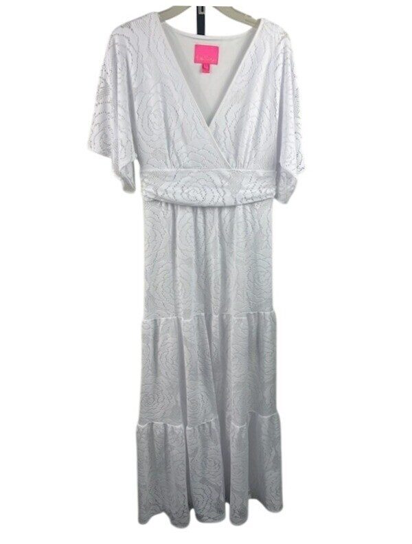 Lilly Pulitzer Maxi Dress Women's Size Medium White Lace V Neck Flutter Sleeve